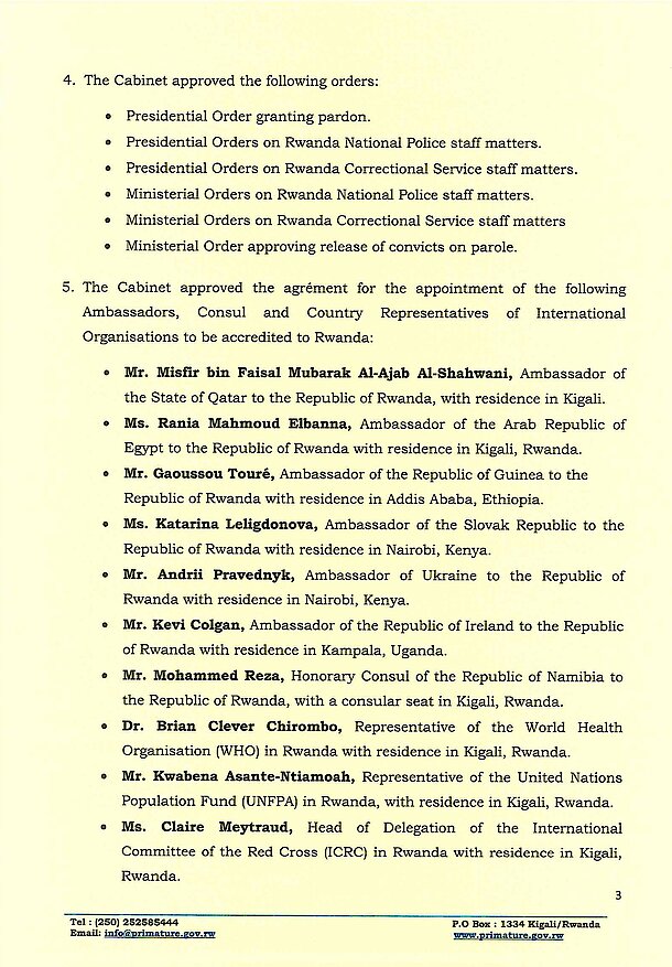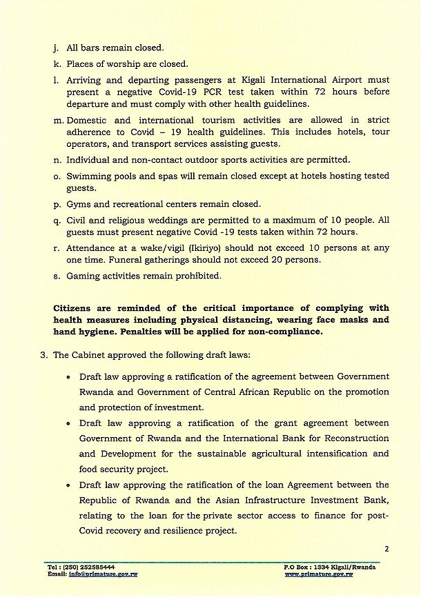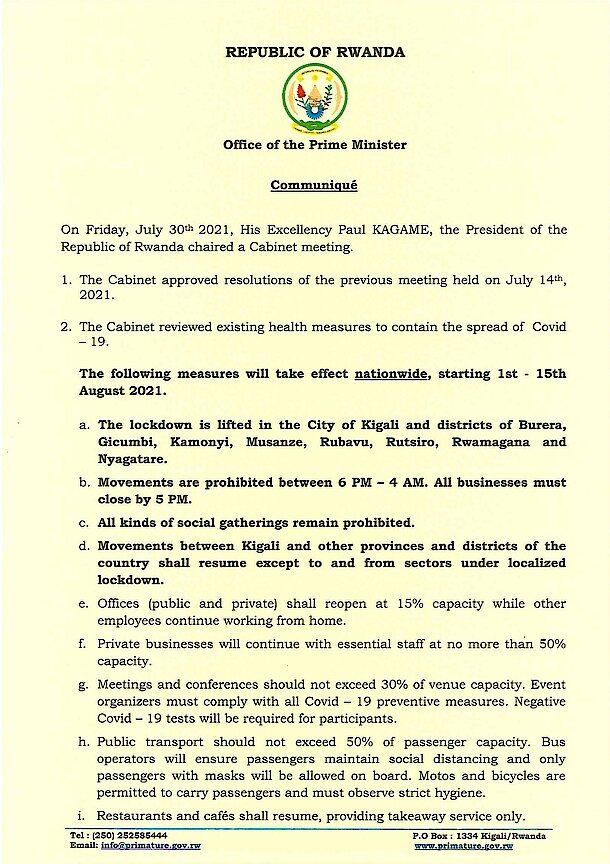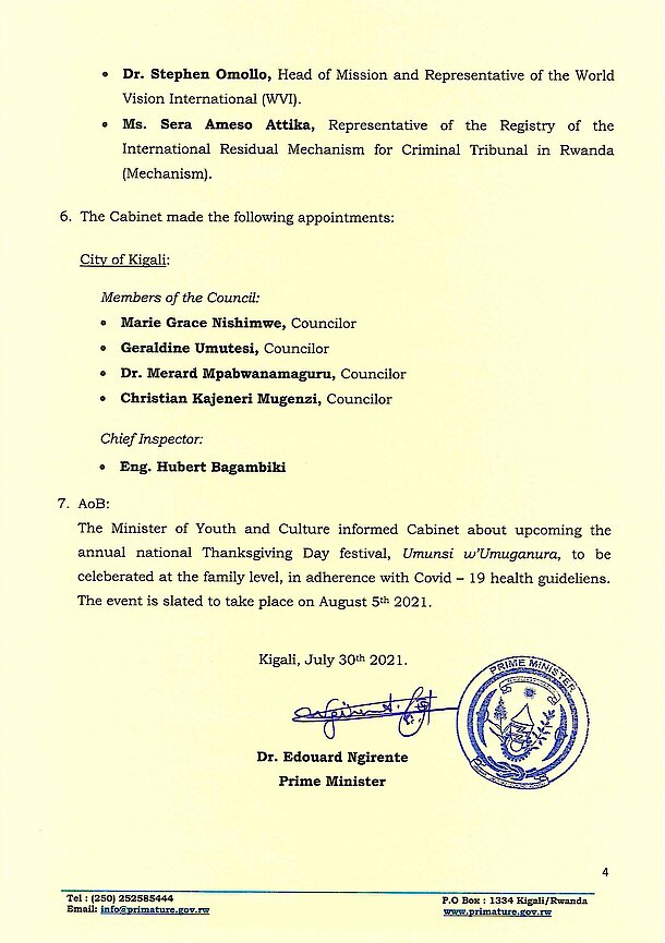 Cabinet communique July 30th, 2021