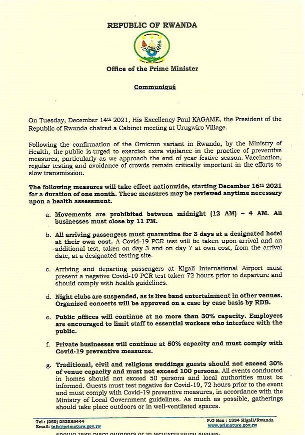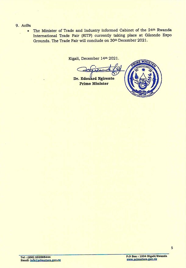 Statement on Cabinet Resolutions of 14/12/2021